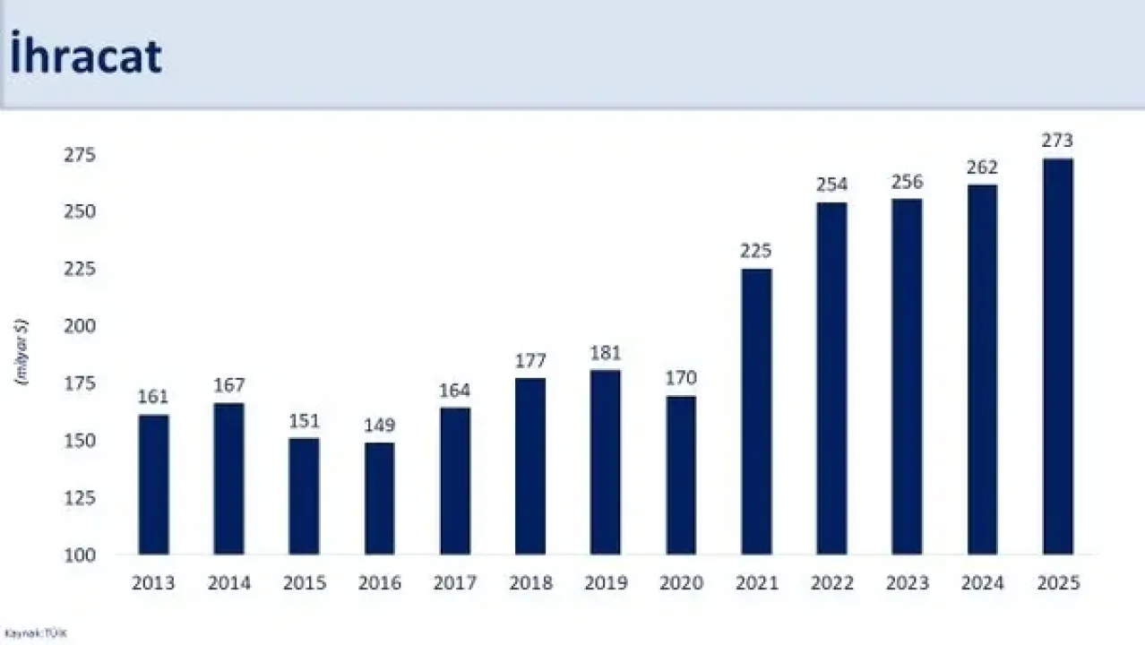 Bakan Şimşek, 2025 yılında ihracatın bir önceki yıla göre yüzde 4,4 artarak 273,4 milyar dolar seviyesine yükseldiğini dile getirdi. İthalatta, özellikle altın fiyatlarındaki artışın etkili olduğunu ifade eden Şimşek, buna rağmen dış ticaret açığının Orta Vadeli Program’da (OVP) öngörülen seviyelerin altında kaldığını vurguladı.
