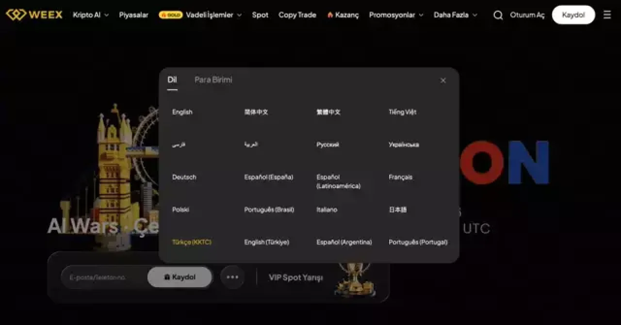 Son dönemde bazı platformların, Türkçe dil desteğini doğrudan Türkiye yerine Kuzey Kıbrıs Türk Cumhuriyeti’ne (KKTC) yönelik sunduklarını belirterek düzenlemeleri aşmaya çalıştıkları iddia ediliyor. Bu kapsamda Weex adlı borsanın internet sitesinde Türkçe arayüzü KKTC seçeneği üzerinden erişime açtığı ve kullanıcıların bu yolla özellikle kaldıraçlı işlemler gerçekleştirebildiği ön plana sürülüyor.