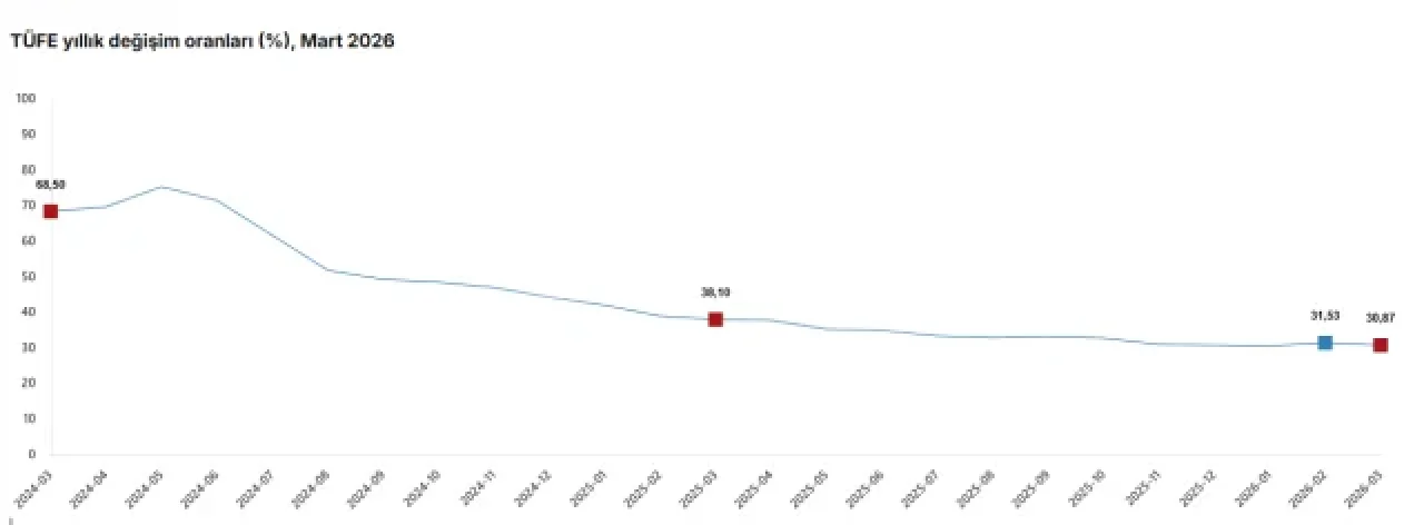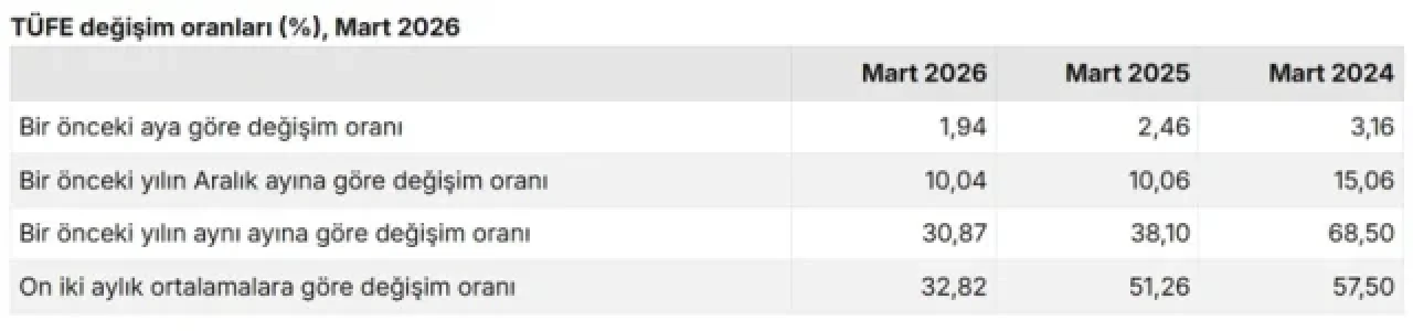 Türkiye İstatistik Kurumu (TÜİK), Mart 2026'ya ait enflasyon verilerini açıkladı. Mart ayında aylık enflasyon yüzde 1,94 artarken, yıllık enflasyon yüzde 30,87 olarak kaydedildi. Petrol ve diğer ürünlerdeki fiyat artışlarına rağmen, enflasyon artışı beklentilerin altında kaldı.