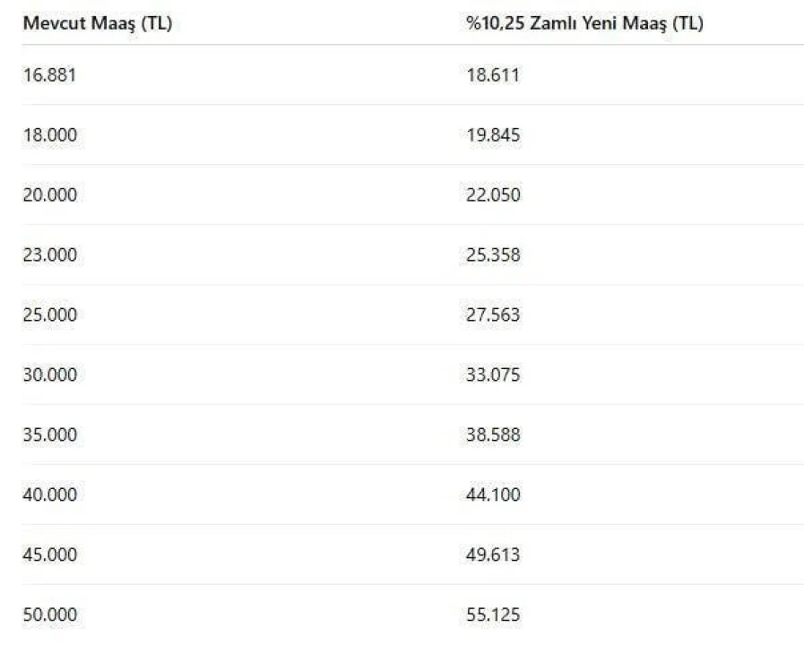 Ekim ayı enflasyon rakamlarının açıklanmasıyla birlikte, memur ve emekli maaşlarına yapılacak zam oranları şekillenmeye başladı. TÜİK verilerine göre temmuz–ekim dönemi enflasyonu %10,25 olarak gerçekleşti. Bu oranla birlikte SSK ve Bağ-Kur emeklilerine yaklaşık %13, memur ve memur emeklilerine ise %19 civarında zam yapılması öngörülüyor. Kesin oranlar, yıl sonu enflasyon verilerinin açıklanmasının ardından netleşecek.