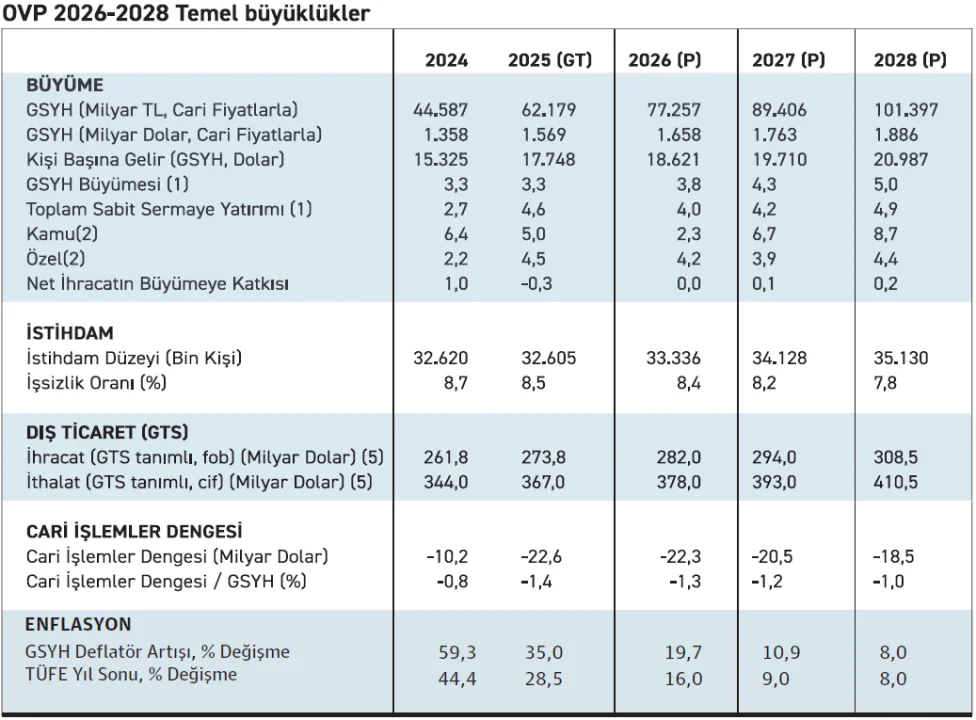 - Büyüme: 2026’da %3,8, 2027’de %4,3, 2028’de %5 büyüme hedeflendi.